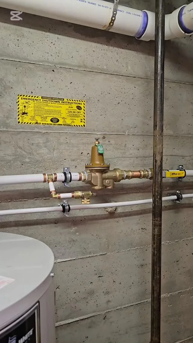 As a part of this home renovation of a secondary suite, we installed shut-offs on the hot/cold water mains, now all the plumbing fixtures located in the suite are fed from these valves, providing a means of shutting down the suite water, without affe